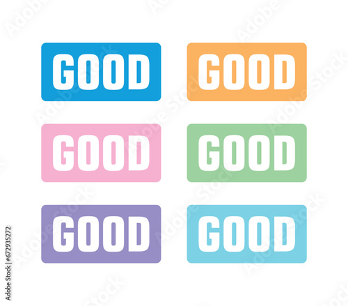 A set of stickers or icons "GOOD". Designation of quality or approval. Printing for applying to quality goods or services.
