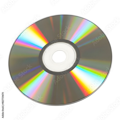 A shiny compact disc with rainbow reflections against a white background