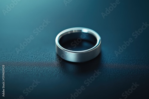 A silver metallic ring resting on a textured black surface