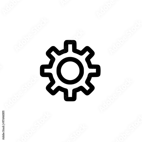 A simple black gear icon on a white background, representing settings or mechanical functions.