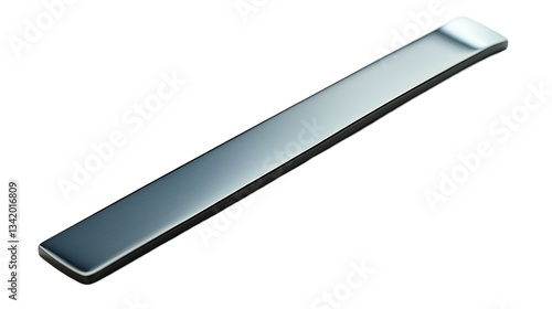 A simple metal bookmark with a sleek finish, spotlighted, isolated on white background