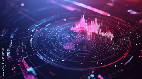 A sleek 3D radar chart with multiple axes and data points, visually demonstrating performance metrics and comparisons in a dimensional format
