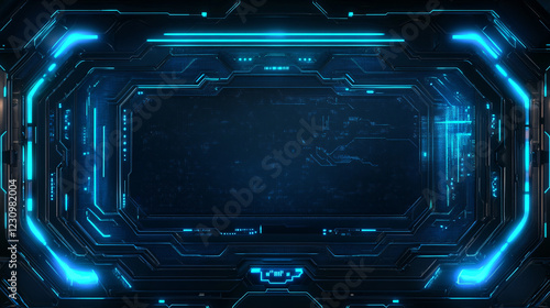 A sleek 3D render of a HUD digital frame with glowing blue lines, showcasing the advanced and futuristic aspects of modern technology