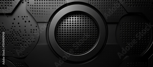 A sleek, abstract design featuring a circular element on a textured black background.