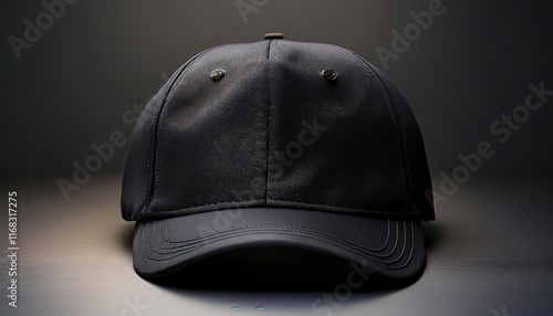 A sleek black cap displayed prominently against a dark background, emphasizing its design and texture.