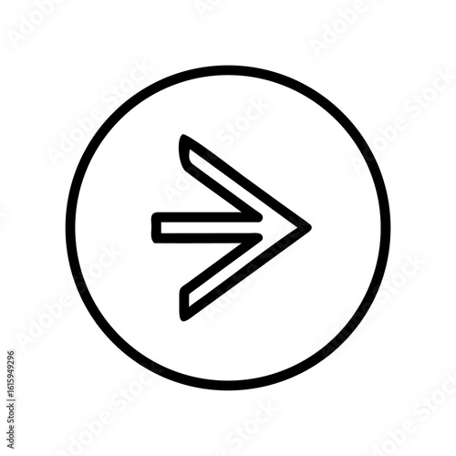A sleek forward arrow icon inside a circular frame, symbolizing direction, progress, and the next step. Minimalist vector line art perfect for a play button or navigation pointer.