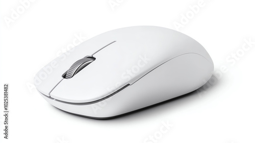 A sleek white computer mouse on a white isolated background, showcasing modern design and functionality for office or personal use.