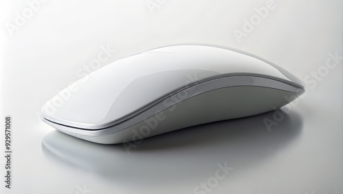 A sleek white computer mouse rests on a clean, empty white background, emphasizing its modern design, simplicity, and functionality in a minimalist environment.
