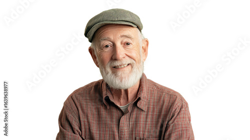 A smiling elderly man with a beard, wearing a cap. The image captures warmth and friendliness, ideal for various themes.
