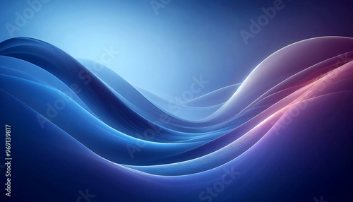 A smooth flowing abstract background featuring gradients of deep blues and purples with soft curves and light reflections creating a serene and ethereal ambiance