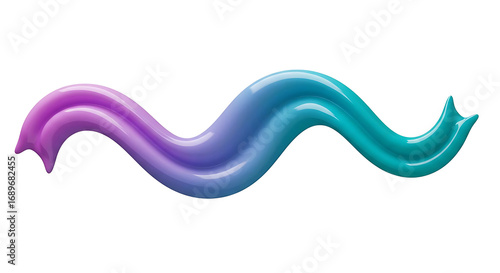 A smooth, sinuous wave-like form with a gradient of purple to teal, appearing as a fluid ribbon or brushstroke against a white background.
