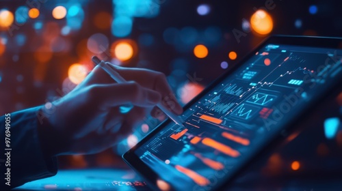 A software engineer employs a digital tablet to work with big data, combining AI and advanced digital technology for effective data science applications