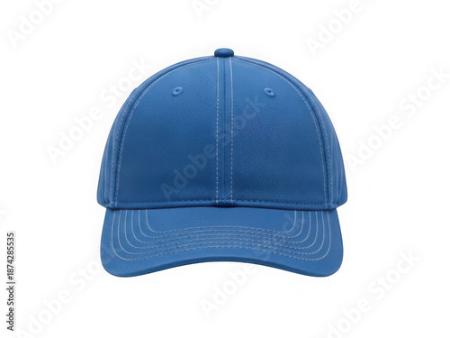 A solid blue baseball cap with visor and adjustable strap