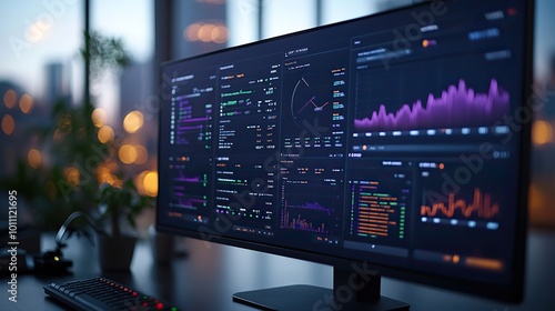 a sophisticated wind turbine data analytics dashboard displaying real time metrics ,graphs for assessing the efficiency ,profitability of renewable energy production