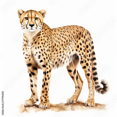 A standing cheetah watercolor clipart illustration on white background