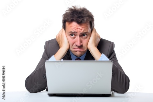 A stressing office worker computer worried laptop.