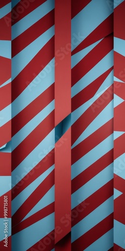 a striking abstract pattern composed of diagonal red and blue stripes, creating a sense of movement and dynamism
