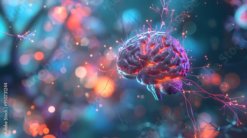 A stunning 3D illustration of a brain with vibrant colors and neural networks, representing neuroscience and brain activity.