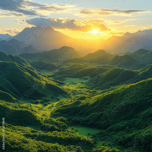 A stunning view of a mountain range during sunrise