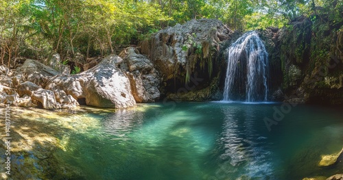 A Stunning Waterfall Flows into a Serene Turquoise Water Pool