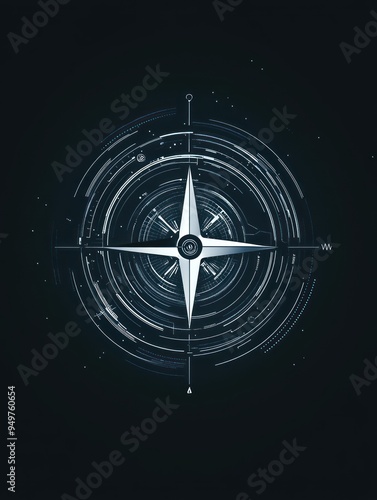 A stylized compass design with intricate circular patterns and a dark background.