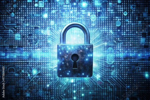 A stylized illustration of a padlock securing a confidential document, surrounded by cryptic coding and abstract