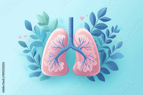 A stylized illustration of lungs surrounded by leaves, symbolizing health and nature.