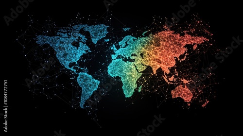 A stylized map with glowing lines and data streams representing the flow of information within global AI networks, highlighting the interconnectedness of AI research and development across different