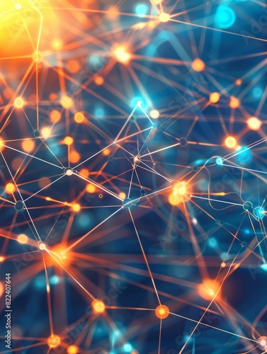 A technology background with an abstract representation of AI learning process, visualized as a network of interconnected nodes and pathways background