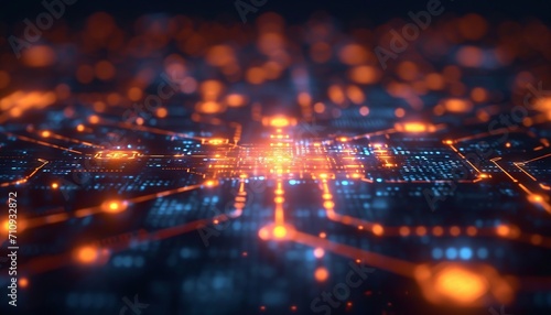 A technology background with data represented in light.