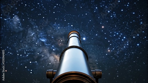 a telescope gazing at the vast expanse of the starry night sky. The telescope is a symbol of exploration and discovery