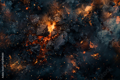 A texture of a fire with flames, sparks, and smoke