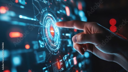 A user engages with an advanced digital interface, manipulating a campaign management panel filled with analytics