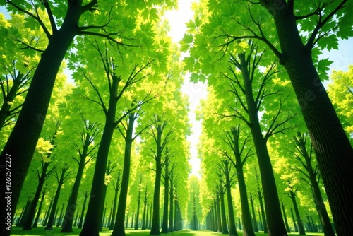 A Verdant Canopy of Trees in a Lush, Sunlit Grove, Creating a Serene and Tranquil Atmosphere of Natural Beauty