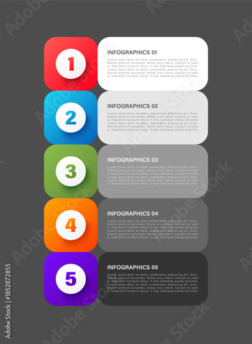 A vertical infographic template with five steps. Vector layout for business presentation slides.