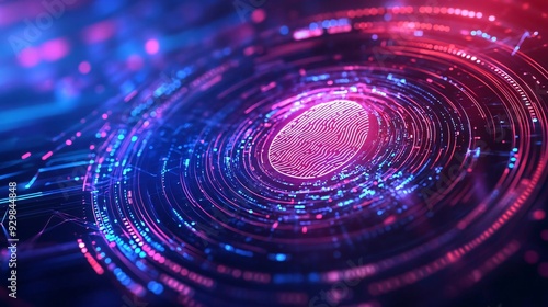 A vibrant abstract design showcasing glowing circles and digital elements in blue and red hues, representing technology and innovation.