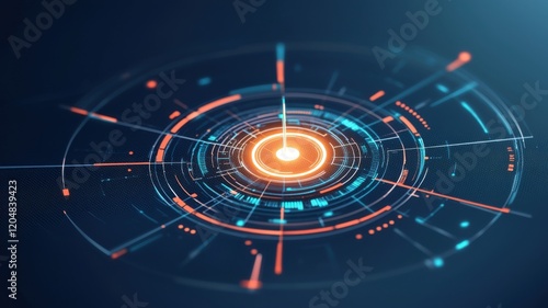 A vibrant, abstract digital design featuring concentric circles and glowing elements, suggesting advanced technology and data visualization.