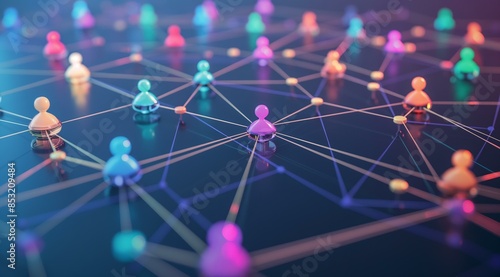 A vibrant and abstract digital representation of a network, featuring colorful icons of people connected by lines. The image symbolizes social connections, communication