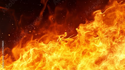 A vibrant and dynamic portrayal of flames dancing against a dark background, radiating heat