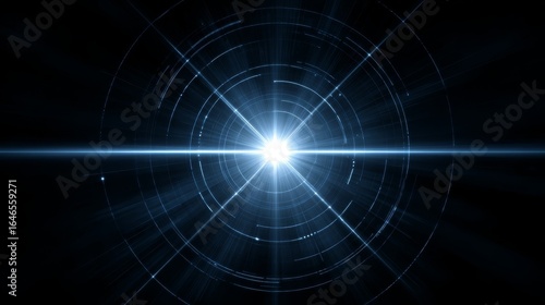 A vibrant blue orb of light emits a radiant energy glow a celestial beam against a dark background a flare creating a circular sphere in the center of the frame.