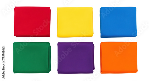 A vibrant collection of folded fabric squares in rainbow colors creates a playful and cheerful design element for your project.