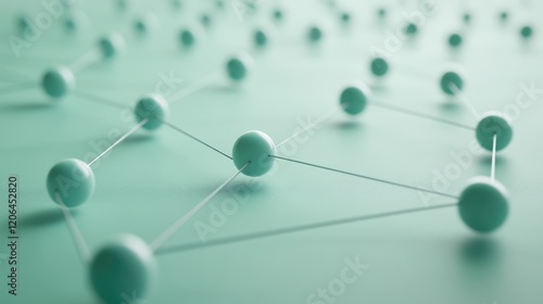 A vibrant D rendering of interconnected nodes on a soft green background.