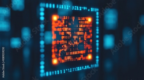 A vibrant, digital close-up of a microchip with glowing circuitry, representing technology and data processing.