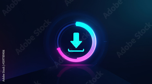 A vibrant, digital download icon featuring a circular progress bar with blue and pink hues against a dark background.