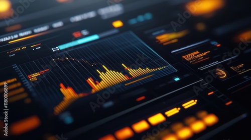 A vibrant digital interface displaying colorful data visualizations and analytics metrics, emphasizing technological advancement and data analysis.