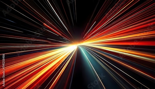 A vibrant display of light streaks radiating outward, creating a sense of speed and motion against a dark backdrop.