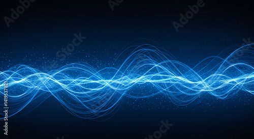 A vibrant image showcasing abstract blue light waves against a dark background creating a dynamic effect