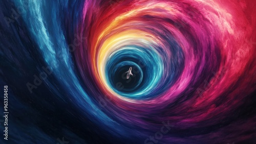 A vibrant swirl of colors depicting a dreamy vortex, illustrating a captivating journey through space and imagination.