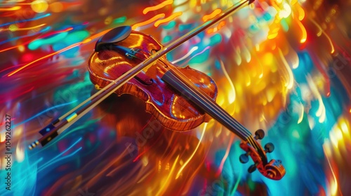 A Violin Resting on a Vibrant, Colorful Surface