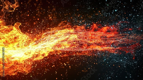 A visual metaphor of a digital fire being extinguished by streams of code, representing quick action in cybersecurity incident response, with bright red and white colors.